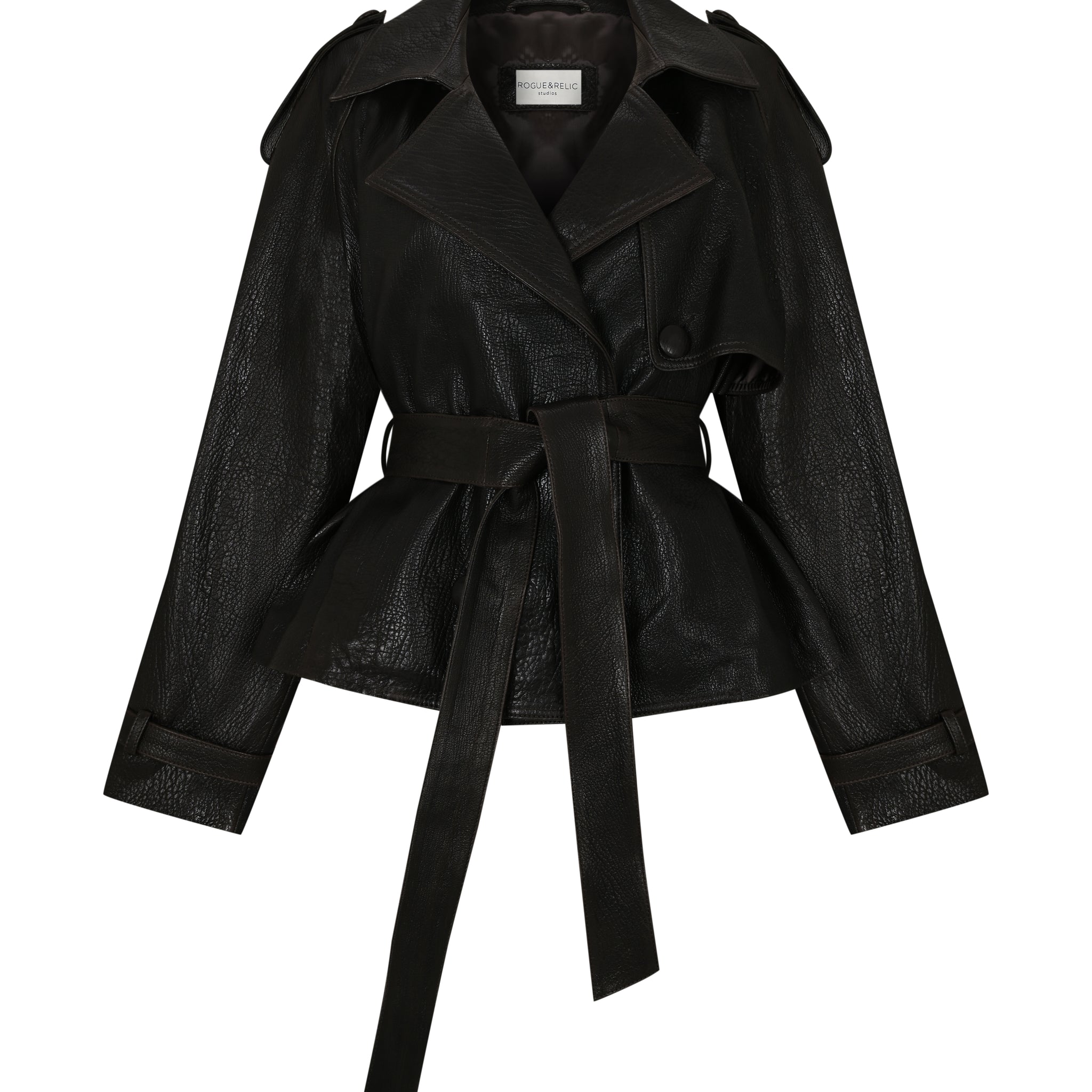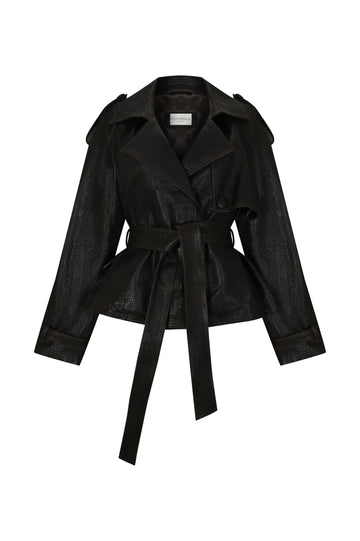 %100 dana derisinden üretilmiştir. Deri kemer detayı, siluete yapı ve karakter katar. Astarlı iç yapısı ve relaxed fit kalıbıyla şık bir rahatlık sunar.